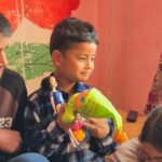 Puis, nous avons visité l’orphelinat NEW PEACE CHILD HOME qui accueille environs 15 enfants de 6 à 23 ans. Il est dirigé par Krishna Ghimire qui recherche une solution de financement car son principal pourvoyeur de fonds, l’association Lotus, enfants du Népal,  va cesser son activité, leurs membres fondateurs étant trop âgés. Il recherche également une habitation avec jardin pour permettre aux enfants d’avoir un terrain de jeu en extérieur et pourquoi pas, effectuer des plantations de légumes. Le bailleur de l’immeuble souhaite qu’ils libèrent cette location. Dans cette structure, les membres vivent comme une famille où le respect mutuel et le partage semblent être des valeurs primordiales. Les enfants étaient heureux de recevoir des jouets et des vêtements de PADEM. Ils nous ont offert en retour des chants et des danses népalais.