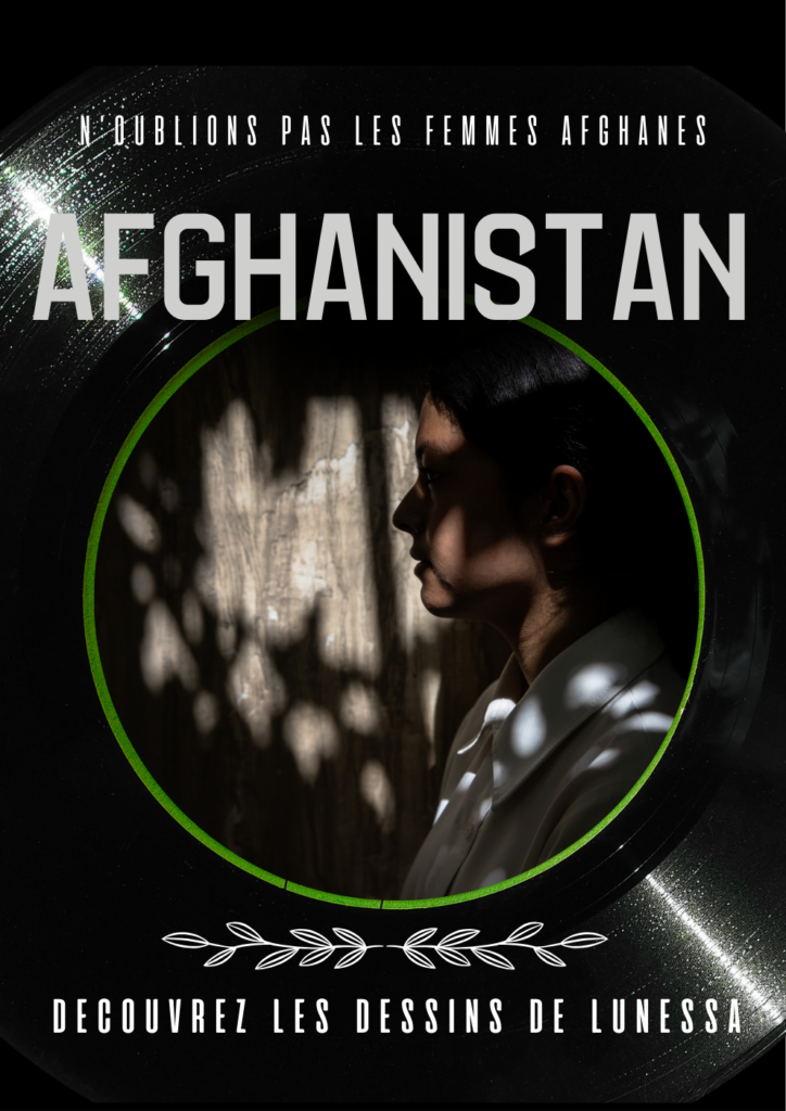 Through her drawings, Lunessa gives a voice to those who are now being silenced: Afghan women and girls deprived of their fundamental rights.